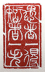 縦横・・5x3cm 戰國齊國の廣武君が韓信に語った言葉の一句を、『 史記』淮陰侯傳から小篆で刻した、「愚者一得知者一 失」(愚者の一得、智者の一失)である。廣武君は「智 者も千慮に必ず一失有り、愚者も千慮に必ず一得有り 」と言っている。この言葉は、本来朱文の小篆で刻する 豫定であった。頭と意識は朱文朱文と思いながら、「愚 」の字を彫り終えた所で、よくよく見てみたら白文を彫っ ていた。愕然とした、朱文朱文と意識しながら目も一應 印面を見ている、にも關わらず手が勝手に白文を彫り 、其れに暫く氣がつかなかった。抗癌剤の副作用など と言い譯は決してしない。此は明白な惚けで、惚けも 惚け大惚けである。確かに今までも物忘れはしたが、 己の老化現象が此處まで進んだ事例を、眼前に見せ つけられて悲しくなり、愕然として暫く考え込んだ。 |