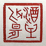 縦横・・3x3cm 北宋の鮑士恭が編した『五國故事』下に有る一句を、 甲骨文で刻した「酒有別腸」(酒に別腸有り)である。こ の言葉は、唐末五代の閩主であった王延羲が、小なが らも大酒を飲む翰林學士の周維嶽の事を、「惟れ羲と 維嶽と坐に在り、因りて左右を顧みて曰く、維嶽は身躯 甚だ小なれども能く飲むこと許酒の如しと、左右對へて 曰く、臣聞く、酒に別腸有り、肌體を以て之を論ず可き に非ずと」と答えた故事に依據している。要するに酒飲 みの言い譯で、日本でも「壽司は別腹」とか「菓子は別 腹」とか言う。小生は小豆が大好きで、お萩だ、大福だ 、アンパンだ、夏は宇治金時だ等と食べまくり、酒も喉 に沁みるなあ等と言って飲んでいたが、糖尿・癌等邪 魔をして全て禁止になった。今は「別腸」「別腹」ではな く、「本腸」「本腹」の一口程度で、後ろ髪を引かれる思 いでの飲み食いである。 |