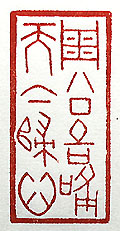 縦横・・5x2.4cm 魏の曹操の短歌行の一節を、甲骨文で刻した「周公吐 哺天下歸心」(周公哺を吐き天下心を歸す)である。有名 な赤壁の決戰前に曹操はこの歌を詠じ天下統一を願っ たが、結果は天下は心を反し、三國鼎立の状況を招來 せしめた。因みに己に關しては、入院手術の時は二人 の娘も妻も、小生に心を歸してくれたが、其れは所詮一 時の事で、手術中にさっさと各自の居住地に帰り、今 や彼女達の心は妻に歸している。先日長女から電話が 有り、「調子はどう」と聽から「大丈夫」と答えたら、「お父 さんの事では無い、お母さんの事だ、お母さんの機嫌だ よ」と言われ、次いで「中林家の安寧はお母さんの機嫌 が良い事の一點に係っているから、お父さんは絶対お母 さんの機嫌が悪く成る様な言動は取らない様に」と説教 された。私に對する心配では無く、妻の様子を窺う電話 であった。「老いては子に從へ」とは言うが、何か家族中 に於ける己の存在感の薄さに、一人で悶々と悩んで居 る。 |