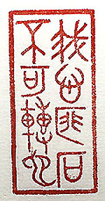 縦横・5x2.4cm 『詩經』邶風柏舟の一節を、金文で刻した「我心匪石不 可轉也」(我が心は石に匪ず轉ず可からざるなり)であ る。『詩經』には、「我心匪石不可轉也、我心匪席不可 卷也」と有り、心志の堅平なることを言った言葉である。 己の普段の生活には特段の心志など無かったが、漢 文訓讀に關する心志は、堅平を維持す可く努力して來 たつもりである。 |