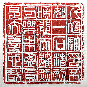 縦横・5.8x5.8cm 遂に駄馬印千個を突破した。多く彫れば善いと言うもの では無く、彫るだけ技術が進歩しりと言うものでも無い。 其れは百も承知の上で、彫り續けて來た。令和二年四 月に河西先生門下となり、印稿から指導を受けた所謂 作品的なものは、僅か三十點彊に過ぎないが、八月か ら練習の爲と稱した習作は、日記代わりに其の日其の 日に感じた事を、即興的に刻すると言う愚行を重ねて、 實質四年で千個に到達した。問題は、千個を刻して己自 身が何を感得し、何を思ったかであるが、其の感慨を印 篆で刻した、「千個駄印、不如一石精刻、噫悲夫、雖然 刀樂未盡焉、是亦善也哉」(千個駄印は、一石の精刻 に如かず。噫《ああ》悲しいかな。然りと雖も刀樂は未だ 盡きず。是れ亦た善きかな)である。では次はと問われ れば、目指せ駄印二千個であり、其の次は三千個であ る。其れが病苦を抱えた老人の、生きる爲の道程でも あれば、今後も樂しみ事としての石彫りを續けて行くつ もりである。不遜にも些かでも己が篆刻家などと思った 瞬間に、此の樂しみは霧散する、故にこそ樂事としての 筋目を踏み外さぬ様、心懸けねばならない。 |
