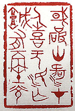 縦横・5.8x3.8cm 最近世界では爭いが絶えない。ニュースを見聞するのが 些か嫌になる。破壊された街、横たわる死体等々、其れ を何處か他人事の様に見ている己の心に、愕然として 悲しい氣持になる。ロシアとウクライナの爭い、イスラエ ル對パレスチナ、ミャンマーの内戰、早く終わって國家の 再建に取り組んで貰いたいと、切に願っている。金文で 刻した、「國破山河在人喜无泯亡城有再生光」(國破れ て山河在り、人は泯亡无きを喜び、城《まち》は再生の光 有り)である。 |