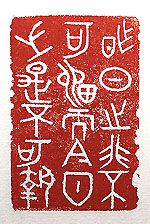 縦横・5.8x3.8cm 『醉古堂劍掃』卷十一の一節を、金文で刻した「昨日之 非不可留而今日之是不可執」(昨日の非は留む可から ずして今日の是は執る可からず)である。是非には捕ら われないと言う事であるが、此の言葉は『菜根譚』の修 身七にも有り、『醉古堂劍掃』・『菜根譚』共に、「昨日の 非は留む可からず、之を留むれば則ち根燼復た萌して 塵情終に理趣を累はさん。今日の是は執る可からず、之 を執れば則ち渣滓未だ化せずして理趣反轉して欲の根 と爲る」と言っている。是非得失には執着しない様には心 懸けているが、時として得失に執着してしまう事が有る、 凡人の悲しさである。 |