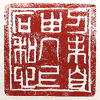 縦横・3.6x3.5cm 印篆で刻した、「刀未自由几上石和心」(刀は未だ自由な らざるも几上の石は心を和ます)である。彫れる面が有れ ば何處でも彫ってしまうが故に、押すのが上手く行かず、 何回押しても失敗である。厚さが5ミリほどで上部が彎曲 しており、押す力がどうしても加えられず、此の爲體であ る。石を手に持って刻した爲に、刀にも力が入らず線が 弱くなってしまった。全く彫れば善いと謂うものでも無い のに、愚かな困った行爲である。 |