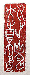縦横・4.8x1.5cm 甲骨文で刻した、「川歩山壽無時不盡」(川のごとき歩、 山のごとき壽も、時として盡ざるは無し)である。川の様に 滔々と流れて止まる事無き歩みも、山の様に何時までも 變らむ壽も、いずれは盡きてしまう時が來る。この世に永 遠などと言うものは無い。有るとしれば、其れは願望であ り、或いは我慾に過ぎないであろう。七十五歳は長壽で は無いが、かと言って短命でも無い。最近「もうそろそろ 良いではないのか」と言う囁きを、もう一人の己が語りか ける、いよいよ終わりが近づいた自覚症状であろうか。 |