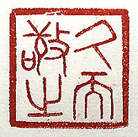 縦横・3x3cm 『論語』公冶長篇の一句を、東周篆で刻した「久而敬之」 (久しくして之を敬す)である。『論語』には、「孔子曰く、晏 平仲は善く人と交わる、久しくして之を敬す」と有る。良く 人と交われば尊敬される様に成る、と言う事である。己 などは結構好い加減な付き合いを長く續けていれば、決 して尊敬される事など無いが、付き合いが途切れる事も 無い。敬されなくても、己との交際を喜んでもらえるなら、 其れで十分である。然りと雖も互いに尊敬し合う關係を築 く事は、矢張り重要であろう。 |
