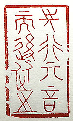 縦横・5x3cm 『論語』爲政篇の一句を、古璽文で刻した「先行其言而後 從之」(先に其の言を行い而る後に之に從ふ)である。今 選擧の真っ最中である、立候補者は誰も耳障りの善い 事を並べ立てるが、果たして其れが實行可能なのか、或 いは選挙後に確實に施行されるのか、甚だ疑問が生じて 來る。先ず何か具體的に實行してからあれこれ言って欲 しいと思う。この『論語』の一句を立候補者の方々に送り たい。 |
