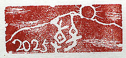 縦横・2x5cm 石の全面に入ったひび割れを利用して、山の稜線と太 陽を刻し、其れに甲骨文の「春」を配し、2025と刻して みた。將に遊び心の即興的なものに過ぎないが、新年 が善き春となる事を願っている。例え地上で何が起こ っていても、新たな春風は何處にでも吹く、將に萬里春 風であるが、其の時は人々が萬事如意となってほしい ものである。 |