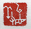 縦横・2x2cm 『孟子』公孫丑上の一語を、甲骨文で刻した「以直養」 (直を以て養ふ)である。孟子は「浩然の氣」が有ると 言う。では其の氣は如何にして得るのかと言えば、直 (正しい道)を以て養ひ、集義して成るものだと言う。一 見簡單そうみ見えるが、直を以て養ふと言うのは、可成 り難しい事である。何故なら人として直とはと、常に己 に問い續けねばならないからである。 |