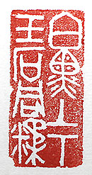 縦横・5x2.5cm 『楚辭』九章の懐沙の數句を、アレンジして戰國篆文で 刻した「白黒上下玉石同糅」(白をば黒とし上をば下とし 、玉石をば同《とも》に糅《まじ》ふ)である。物の本來の 価値を判斷出来ない状態を表した言葉である。懐沙に は、「白を變じて以て黒と爲し、上を倒にして以て下と爲 す。鳳皇笯に在りて、雞鶩翔り舞ふ。玉石を同糅して、 一概にして相量る」とある。言葉は悪いが玉石混淆の 糞味噌の話であり、最近の世相も若干これに近い様に 感じるのは、己一人であろうか。 |