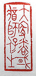 縦横・5x2cm 『國語』晉語一の一句を金文で刻した、「大家隣國將師 保之」(大家の隣國將に之を師保せんとす)である。大き な隣國が周圍の國々を導き、自立自保出来る様にする 事を言った言葉である。しかし、最近の國際情勢を見る と、大家の隣國が「師保」ならぬ「保有」せんとする傾向 、「大家の隣國將に之を保有せんとす」状況が、多々散 見し、悲しい氣持になる。 |