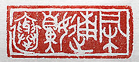 縦横・2x5cm 小學校時代の運動會を思い出していたら、母親達の走 る姿が頭を過った。村落の一大イベントであり、来賓に 村長や農協長・駐在さん等を迎え、皆々筵を校庭に敷き 辨當を持ち寄って樂しんでいた。又々突然馬鹿な事が 頭を過ぎり、有るはずも無い金文風(あくまで風である) の國字で刻してみた、全くお笑い種の出鱈目な愚行で ある。「凩遖嬶襷」(凩《こがらし》に遖《あっぱれ》嬶《か かあ》の襷《たすき》かな)である。當時のお母さん方は、 もんぺ姿で地下足袋を履き、襷を掛けて走っておられ、 無論男衆もハチマキに地下足袋で、校庭には歓声のみ ならず、彼方此方に一升瓶も転がっていた。 |
