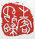 縦横・2×2cm 『淮南子』精神訓の一語を甲骨文で刻した、「生寄死歸 」(生は寄なり死は歸なり)である。この世の生は假の宿 であり、死こそが本來落ち着くべき故郷に歸ると言う事 である。早くこの境地に至りたいと思うのであるが、雜念 が邪魔をして至れそうも無い。精神訓には、「生は寄な り死は歸なり、何ぞ以て和を滑《みだ》すに足らん」と有る が、俗人の煩悩が常に「和を亂し」ている。 |