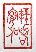 縦横・3.2×2cm 『老子』第六十三章の一句を、金文で刻した「輕諾寡信」 (輕諾は信寡《すくな》し)である。餘りに何事も輕々承諾 すると、返って信用を失う事になる。『老子』には、「輕諾 は必ず信寡く、易多きは必ず難多し」と有る。何でも「は いはい分かりました」と言うのは考えもので、場合に因っ ては「彼は返事は良いが輕諾寡信だ」と言われかねな い。返事にはよくよく注意が必要なのである。 |