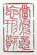 縦横・3.2×2cm 『晉書』阮籍傳の一句を、小篆で刻した「當得意忘形骸」 (意を得たるに當りてや形骸を忘る)である。得意のあま り己の存在自體も忘れてしまう事である。人はあまりに ものぼせ上がってしまうと、我を忘れてしまう。阮籍傳に は、「其の意を得たるに當りてや忽ち形骸を忘る」と有 る。要は得意に成りすぎない事が肝要で、得意が過ぎる と顰蹙を買う事になる。尤も己は、得意な事など一つも 無いので、形骸を忘れる事など無い。 |