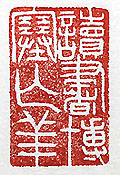 縦横・3.2×2cm 『荘子』駢拇篇の一句をアレンジして、印篆で刻した「讀 書博塞亡羊」(讀書博塞は羊を亡ふ)である。『荘子』に 有る故事で、「二人の男が羊の番をしていたが、一人は 讀書に夢中になり、もう一人は博打に耽っており、共に 羊を逃してしまった」と言う話である。讀書であろうと博打 であろうと、行爲の善し悪しではなく、何か別のものに夢 中になると、本來の行う可き事を忘れてしまう、と言う事 である。己も、石を彫っていたり漢文を讀んでいたりする と、時間になってもついつい食事を忘れてしまい、妻から 叱責と嫌みを言われる事が多くなった。これは決して老 人の惚けでは無い、單なる「讀書彫石亡羊」に過ぎない と信じている。 |