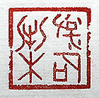 縦横・2.6×2.6cm 『三國志』孫禮傳の言葉を甲骨文で刻した、「浮石沈木 」(石を浮かべ木を沈む)である。根拠の無い無責任な 言論でも、大衆が大聲で唱えると、道理に反して逆に 威力を持つ例えである。孫禮傳には、「衆口金を鑠か し、石を浮かべ木を沈め、三人市虎を成し、慈母其の 杼を投ず」と有る。言論人は謂うまでも無く、ネットに於 ける一般人の發言も、よくよく注意が必要で慎重さが求 められるであろう。 |