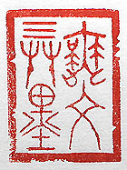 縦横・3.5×2.6cm 『隋書』王充傳の一句を戰國篆文で刻した、「舞文弄墨 」(文を舞はし墨を弄ぶ)である。「明辯」の典據となって いる故事の言葉で、才や技巧を弄び身勝手な理論や 理屈を組み立て、其れを亂用する事の例えである。王 充傳には、「法律を明習して文墨を舞弄し、其の心を高 下す。或ひは之を駁難する者有らば、充は口を利し非 を飾り、辭義鋒起す。衆は其の不可を知ると雖も、能 く屈すること莫し。稱して明辯と爲す」と有る。此処の「 舞弄文墨」を互文にしてみた。 |