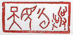 縦横・2.4×5cm 『晉書』樂廣傳の一句をアレンジして、甲骨文で扁額風に 刻した「撥雲見天」(雲を撥き天を見る)で、前途に光明を 見出す事である。樂廣傳には、「此の人の水鏡は、之を 見れば瑩然たりて、雲霧を披きて青天を睹るが若きなり 」と有る。己もリスクの高いカメラ導入の膵臓検査を受け て、其の結果が癌で無いと判明した時には、將に「撥雲 見天」の思いを持った。 |