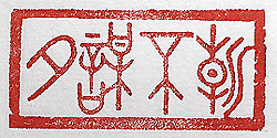 縦横・2.4×5cm 『春秋左氏傳』昭公元年の一語を、金文で扁額風に刻し た「朝不謀夕」(朝に夕を謀らず)である。眼前の問題處 理に追い回されて、先々の方策や戰略が立てられない 事である。己は學生時代から、生活出來る収入さえ有 れば、漢文を讀み續けて書生の様な一生を送りたいと 思っていたが、だからと言って先々の方策を立てた事な ど一度として無かった。寧ろ逆に其の時々の風に身を任 せていたに過ぎない。然りと雖も結果として「逸餘」の様 な生活が送られたのは、天祐に因る僥倖以外の何物で も無いであろう。因って己は、「朝謀朝夕謀夕」である。 |