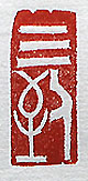縦横・2.9×1.2cm 南宋の朱熹の「訓學齋規」の一文から、金文で刻した 「三到」である。「到」とは専念することで、讀書に必要な 三つの心構えを言った言葉で、心を集中して良く見、口 に聲を出して讀目と言う事である。「訓學齋規」には、眼 到・口到・心到の「三到」が必要であると言う。漢文訓讀 も同じ事で、口に出して讀む音讀をしないと進歩をしない 、目だけで讀む黙讀だけでなく音讀が重要なのである。 |