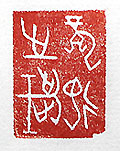 縦横・2.6×2cm 『後漢書』鄭玄傳の故事から、甲骨文で刻した「龍蛇之 歳」である。辰年と巳年は賢人・賢者が死去する歳であ る、と言う事である。鄭玄傳に有る「夢に孔子之告げて 曰く、起きよ、起きよ、今年の歳は辰に在り、來年の歳 は巳に在りと。既に寤め讖を以て之に合し、命の當に終 はるべきを知る」の話に基づき、そのまま鄭玄が死去し た爲、辰年・巳年は賢者が世を去る歳とされている。己 は愚者であれば、決して今年は世を去る事は無いであ ろう。 |