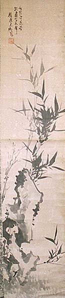 傳・鐵齋富岡百錬、竹圖併行書十字讃(近代、AD1836〜1924) |