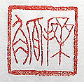 縦横・2×2cm 西晉の陸機の「文賦」の一語を、戰國篆文で刻した「操 觚」(觚を操る)で、文・文章を書く事である。故に文章家 を指して「操觚の士」と言う。文賦には、「觚を操り以て 率爾たり」と有る。「觚」とは、文を書く木の札の事であ る。己は文才など全く無いから、「觚を操り常に逡巡」の 状況で、論文どころか短いレポートさえなかなか欠けなく 、四苦八苦・七転八倒・反省悔悟の四十五年であった。 |