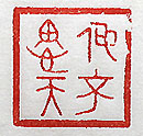 縦横・2.4×2.4cm 『孟子』盡心上の一句を、古璽文で刻した「仰不愧天」(仰 ぎては天に愧ぢず)である。氣持や行動に全く疚しさが無 い事である。盡心上には、「仰ぎては天に愧ぢず、俯して は人に怍ぢず」と有る。己の半生を顧みるに、氣持だけ は「天に愧ぢず人に怍ぢず」と思って居るが、實際行動に 關しては、それこそ「天に愧ぢ人に怍ぢ」、家に帰れば「妻 に慚ぢ娘に恥づ」の繰り返しであった様に思われる。 |