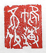 縦横・3×2.6cm 『漢書』賈誼傳の一句を、甲骨文で刻した「帷薄不修」(帷 薄修まらず)である。男女の別も辨えず淫らな生活に耽る 事である。賈誼傳には、「汚穢淫亂、男女別亡きに坐する 者は、汚穢と曰はず、帷薄修まらずと曰ふ」と有る。不倫 ・浮気などは、「帷薄修まらず」の一斑であろうが、政治の 世界から習い事の世界、果ては教育現場に於いてさえも 、「帷薄修まらざる」話を多々仄聞する様になった、此も 時代や価値観の變化であろう。などとしたり顔で言っては いるが、己に「帷薄修まらず」の願望が無かったのかと言 えば、心底には有ったがただ相手が居なかっただけであ る。笑う可し、笑う可し。 |