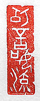 縦横・2.8×0.8cm 『詩經』小雅雨無正の一句を、甲骨文で刻した遊印の「巧言 如流」(巧言流るるが如し)である。相手が喜ぶ様な口先だ けの台詞を、水の流れる様にすらすらと言う事である。雨 無正には、「巧言流るるが如き、身をして休に處らしむ」と有 る。「巧言令色鮮きかな仁」とも言うが、得てして能辯巧言の 人は、信じるに足らざる人が多い。己は、自分では訥言鈍行 の方だと思って居るが、知音に言わせると輕言疾行らしい、 そうであれば己は矢張り不仁な輩である。 |