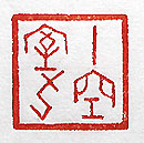 縦横・2.1×2.1cm 『抱朴子』用刑篇の一句を、甲骨文の回印で刻した「十 室九空」である。住む者が居なくなり空家の多い過疎の 状況を表した言葉である。用刑篇には、「天下反せんと 欲し、十室に九は空し、其の亡ぶ所以は、豈に嚴刑に 由るか」と有る。己が生まれ育った故郷の家も、今や空 家と成り果て、周圍の竹林はイノシシの住み家となって しまった。今都会のみならず田舎でも、この空家現象が 大きな社會問題となっている。 |