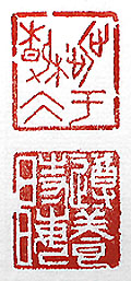 縦横・2.3×2.1cm 『書經』君牙篇の一句を、甲骨文で刻した「渉于春冰」(春 冰を渉る)と、『詩經』周頌酌の一句を、印篆で刻した「遵 養時晦」(時の晦を遵《ひき》い養《と》る)とである。「春冰 云々は、危険を犯す事の例えで、君牙篇には、「心の憂 危、虎尾を蹈み春冰を渉るが若し」と有り、「遵養云々」は 、英氣を養い時機が訪れるのを待つ事を表した言葉で、 酌に「ああ鑠なる王師、時の晦を遵い養る」と有る。この歳 になると、特段何かを求める事も無いが、其れでも春冰を 渉るが如き行動は取らず、遵養時晦の生活を送りたい。 |