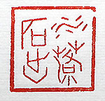 縦横・3×3cm 北宋時代の歐陽脩の「醉翁亭記」の一句を、甲骨文で刻 した「水落石出」(水落ち石出づ)である。本來は川の水 が減って川底の石が姿を現す事であるが、其處から物 事の真相が明かになる例えとして使われる。醉翁亭記 には、「野芳發して幽香あり、佳木秀でて繁陰す、風霜 は高潔、水落ち石出づる者は、山間の四時なり」と有る 。物事は嘘で塗り固めて誤魔化していても、何時かは水 落石出と成るものである。 |