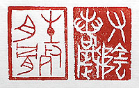 縦横・3×2.4cm 『北史』韓禽傳の一句を戰國篆文で刻した、「寸陰若歳」( 寸陰歳の若し)と、『春秋左氏傳』襄公二十二年の一句を金 文で刻した、「生死肉骨」(死を生かし骨に肉つく)とである。 「寸陰云々」は、人との再会を待ち焦がれる氣持を表した 言葉で、韓禽傳には、「師を班ちて凱入し、誠に遠きに非ざ るを知る、相思ふの甚だしきこと、寸陰歳の若し」と有る。 亦た「生死云々」は、回復不能と思われる絶体絶命の、甚 だ困難な窮地から、救助された大恩を表す言葉で、襄公二 十二年には、「吾、申叔を見る、夫子は所謂死を生かして 骨に肉つくるなり、我を知る者、夫子の如きは、則ち可なり 」と有る。 |