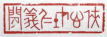 古璽文で扁額風に刻した、「侠心在仁義間」(侠心は仁