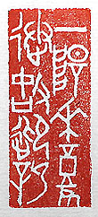 縦横・・5×2cm 『周易本義』復の一語と『漢書』王嘉傳の一語を、甲骨文 で刻した「一陽來復送故迎新」(一陽來復故を送り新を迎 ふ)であり、春が廻ってくると送故迎新の行事が行われ ると言う事である。復には、「此の七爻にして一陽來復に 至るは、乃ち天運の自然なり」と有り、亦た王嘉傳には、「 吏或は官に居ること數月にして退き、故を送り新を迎へ、 道路に交錯す」と有る。 |