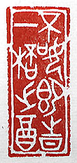 縦横・・5×2cm 『世説新語』任誕篇の一語を、金文で刻した「不如即時 一杯之酒」(即時一杯の酒に如かず)である。後の利益 よりも取り敢えず目先の利益の方が良い、と言う事であ る。任誕篇には、「我をして身後の名有らしむるは、即 時一盃の酒に如かず」と有る。此の言や善しである、本 當に腹が減った時は、食材の善し悪しや好みの善し悪し など關係無く、先ずは一碗の白米である。白飯にお茶を 掛け、沢庵で胃に流し込んだ時の幸福感は、他に代え 難いものが有る。 |