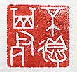 縦横・・2×2cm 『論語』先進篇の一語を、金文で刻した「不得其死」(其 の死を得ず」で、まともな死に方が出來無い事、所謂俗 に言う「畳の上では死ねない」と言う事である。先進篇に は、「由やの若きは其の死を得ざらんと」と有る。己の如 きは、恐らく其の死を得ざらんであろう、決して罪を犯した 譯では無いが、己の好き勝手に生きて來た事は否定出 來ず、兩親・兄弟・家族に迷惑を掛けた事は、枚擧に暇 無く、嫌な思いをさせた事も多々有る。 |