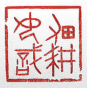縦横・・4×4cm 元の薩都刺の詩「桃源行題趙仲穆畫」の一語を、甲骨 文で刻した「男耕女織」で、中國の傳統的男女の職分を 表した言葉である。薩都刺集卷四の桃源行には、「男耕 女織生業を作し、版籍は是れ秦家の民ならず」と有る。 現代では職業に男女の性差は無いが、舊社會に在って は、牽牛織り姫を想起するまでも無く、良く言われていた 言葉である。 |