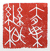 縦横・・4×4cm 『國語』晉語八の一語を、戰國篆文で刻した「去葉絶根 」(葉を去《す》て根を絶つ)で、災禍の根本原因を完全 に除去する事である。晉語八には、「今若し其の柯を大 にし、其の枝葉を去て、其の本根を絶たば、以て少しく 間《やす》む可し」と有る。物事は何に付けても其の根 本に對處する事が重要で、目先の彌縫策に走ると、其 の時は歓ばれても、後々に大きなツケを回し、氣がつい た時には已に手遅れとなって居る事が多い。 |