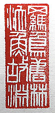 縦横・・2×2cm 陶淵明の五言古詩「歸園田居」其一の二句から、印篆 で刻した「羈鳥舊林池魚故淵」(羈鳥の舊林、池魚の故 淵)で、生まれ育った故郷を慕う事である。歸園田居に は、「誤りて塵網の中に落ち、一去三十年、羈鳥は舊 林を戀ひ、池魚は故淵を思ふ」と有る。己は東都に住 して已に六十年弱、今後期高齢者となり、羈鳥池魚の 思いを益々彊くしている。 |