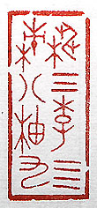 縦横・・4.8×2cm 非常に悦ばしい事であるが、今年も長年地道に研究さ れて來たお二方が、ノーベル賞を授賞された。其處で 金文で刻した「桃三李四柿八柚九」で、何事も物事は、 其の成果や完成を見るには、其れ相應の年月が必要 である、と言う事である。科學分野のみならず人文學の 分野でも、目先の成果では無く、じっくり熟慮したっぷり 思考を巡らした、重厚な成果を求める必要が有るであ ろう、資料を並べて手早く論じたものより、資料を丁寧 に讀み込み熟慮を重ねて論じられたものの方が、讀み 手の心に深く染み入る。何事も花實を咲かすには、其 れなりの時間が必要で、俗な言い方をすれば、「桃は 三年李子は四年、柿は八年柚子九年、共に天下に花 盛り」である。 |