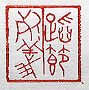 縦横・・2.4×2.4cm 『晉書』元帝紀の一語を、戰國篆文で刻した「蹈節死義 」(節を蹈み義に死す)で、道義の爲に命を投げ出す事 である。元帝紀には、「孤は罪人なり、惟だ節を蹈み義 に死し、以て天下の恥を雪ぐこと有るのみ、庶はくば鈇 鉞の誅を贖はん」と有る。義を以て情を斷ち節を以て行 を糾す、とでも言うことであろうが、分かっていても凡人 には難しい。 |