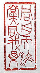 縦横・・5×2.4cm 『孫子』九地篇の一語と『後漢書』黨錮傳序の一語を、 繋いで金文で刻した「同舟而濟黨同伐異」(舟を同じく して濟り同じきに黨《たむろ》し異を伐つ)で、普段は爭 っていても共通の利害に逢うと互いに助け合い、更には 主義主張が共通すると、互いに仲間を組んで異なる者 を排撃する事である。九地篇には、「夫れ呉人と越人と は相悪むなり、其の舟を同じくして濟り、風に遇ふに當 らば、其の相救ふや左右の手の如し」と有り、黨錮傳 には、「石渠分爭の論、黨同伐異の説有るに至りて、守 文の徒、時に盛んなり」と有る。國際情勢を見るに付け この様な思いを持たざるを得ないが、これは何も國家 間の様子のみに止まらず、人間關係に於いても良く見 られる傾向であり、異なる意見には徒黨を組んで責め 立てる。 |