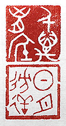 共に金文で刻した、「千萬胸底」と「日月彷徉」(千萬たる胸