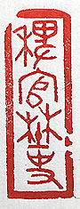 縦横・・4.3×1.6cm 『漢書』藝文志の一語を金文で刻した、「稗官野史」であ る。「稗官」とは小説の事で、「野史」とは官を中心に書 かれた正史に對して、民間で書かれた歴史書の事であ る。中國では古くは、小説や野史は知識人から蔑まれて いたが、寧ろ今ではこれらの中に、面白い話や貴重な 資料が殘されている事が多い。藝文志には、小説家者 流は、蓋し稗官に出で、街談巷語道聽塗説者の造る所 なり」と有る。 |