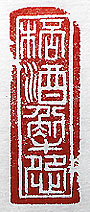 縦横・・4.3×1.6cm 『舊唐書』張延賞傳の話をアレンジして、印篆で刻した「 杯酒解怨」(杯酒怨を解く)で、互いに杯を酌み交わして 、怨みや蟠りを解き忘れる事である。要するに「一杯や って今までの事は水に流そう」と言う事である。張延賞傳 には、「武人の性は快なり、若し舊悪を盃酒の間に釋か ば、終に歡びて解く可し、文人は犯し難し、睦を外に修む と雖も、怒を内に蓄ふ」と有る。知識人は、諸々考え種々 思慮を廻らす爲に、何處か陰湿な部分が有るのであろ うか。 |