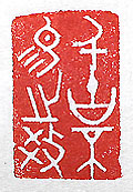 縦横・・3×2cm 金文で刻した「千古不易之教」(千古不易の教)で、永遠 に變わらない教えである。「千古」は永遠と言う意味で、 『懐風藻』の「春日侍宴」に、「帝コは千古に被り、皇恩 は萬民に洽し」と有る。ただ永遠不變の教えなど、本當 に有るであろうか、と考えてみるに、一つだけ有る様に 思える、其れは「恕」(思い遣り)である。人は恕を持つ 事が重要である。時代や社會が如何に變化しようとも、 「恕」の心は他者を助けるのみならず、己自身の心も豊 かにする。今の様な時代こそ世界の指導者達には、「恕 」の心を持ってもらいたいものだと思っている。 |