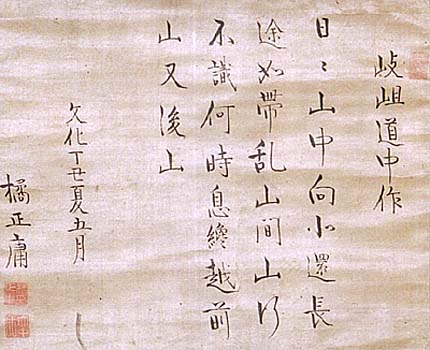 橘正庸 、楷書七絶(江戸時代、AD1750〜1850)
